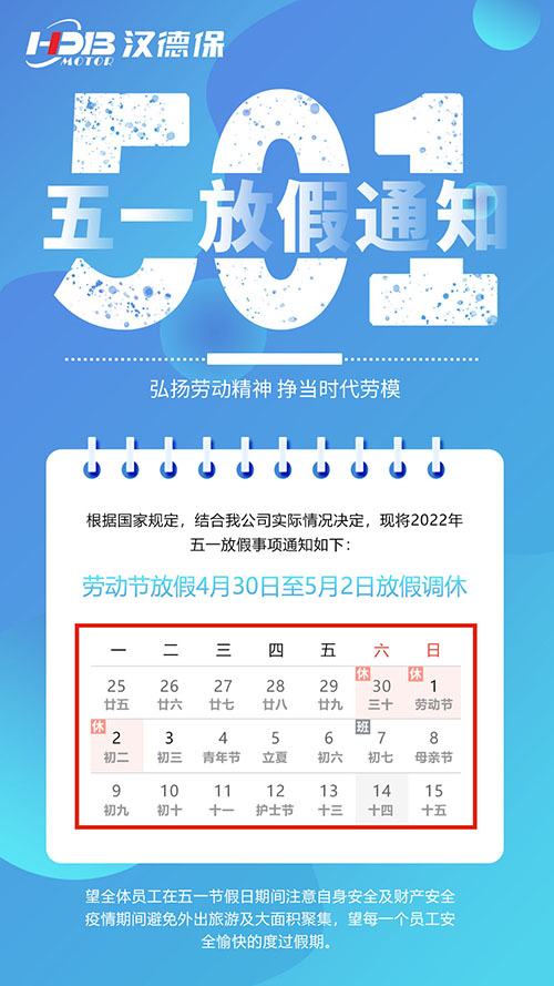 漢德保電機2022年勞動節放假通知